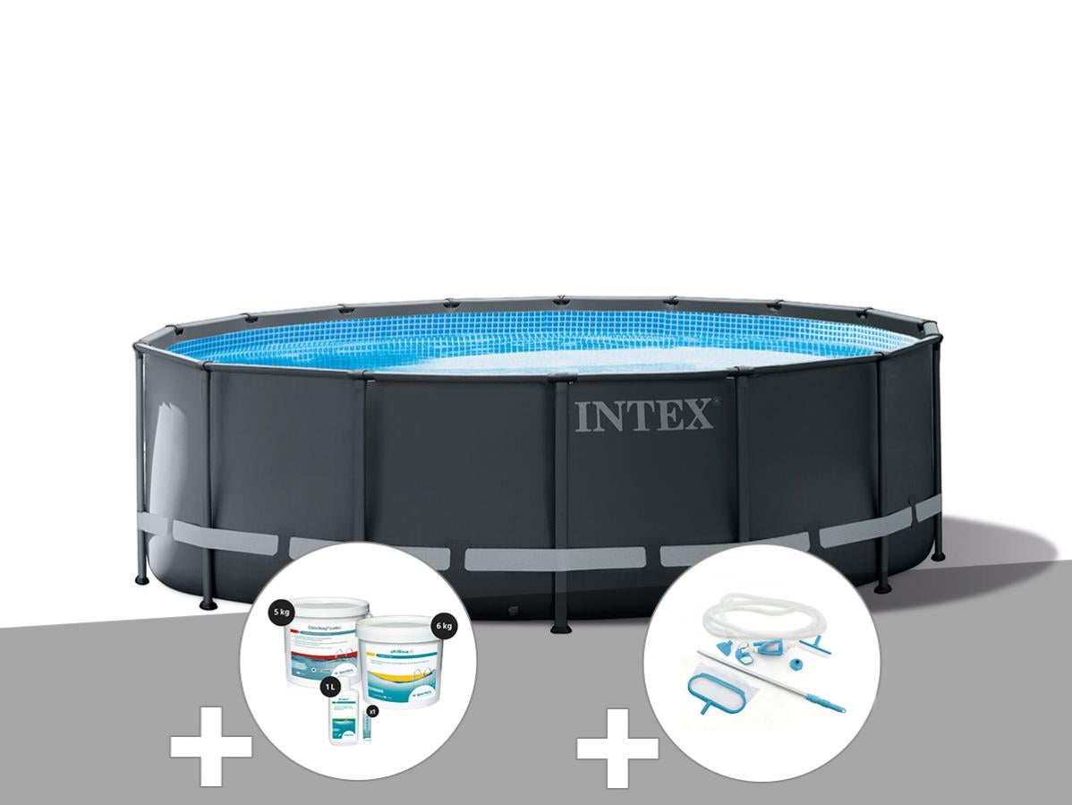 Kit Piscine Tubulaire Intex Ultra Xtr Frame Ronde 4 88 X 1 22 M Kit De Traitement Au Chlore Kit D Entretien Leroy Merlin